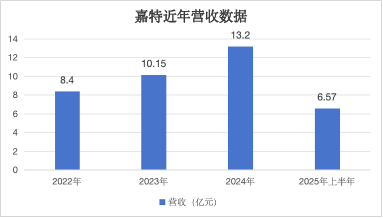 数据显示,嘉特2022年营业收入8.4亿元,2023年突破10.15亿元,到2024年更是攀升至13.20亿元,真正做到了一年一个台阶,稳步穿越经济周期。